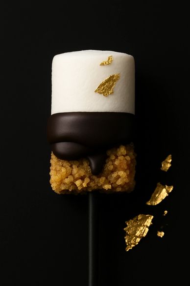Jumbo marshmallows layered with rich chocolate and graham cracker crumble, skewered and styled for a glam, fire-free twist.